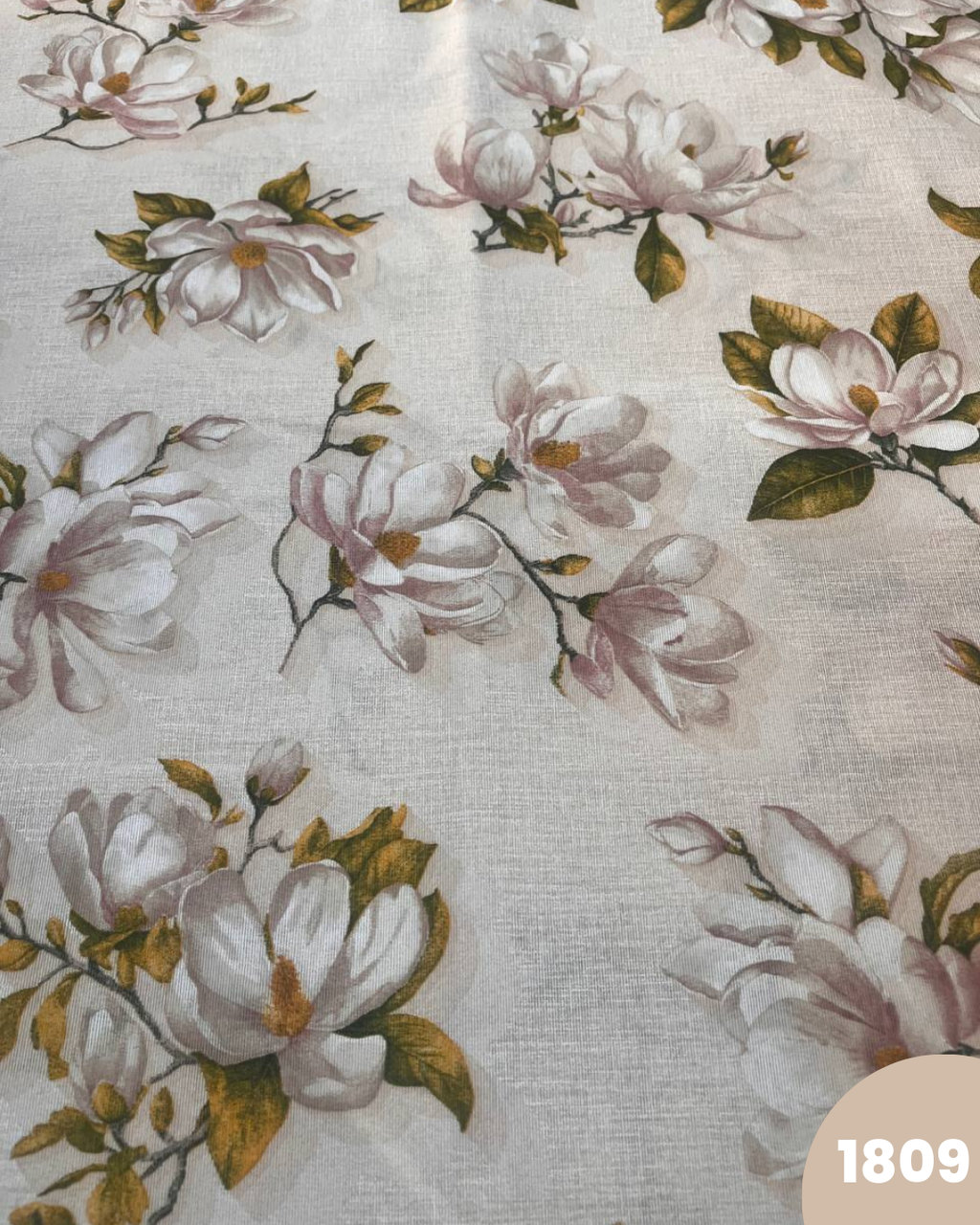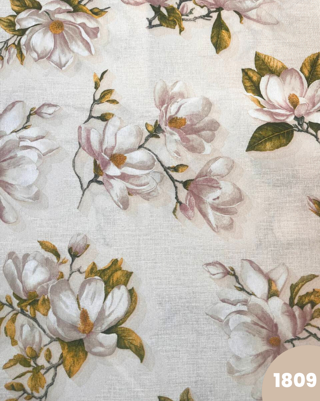 COTONE ARREDAMENTO - 1809 FIORI ROSA CHIARO FOGLIE VERDI